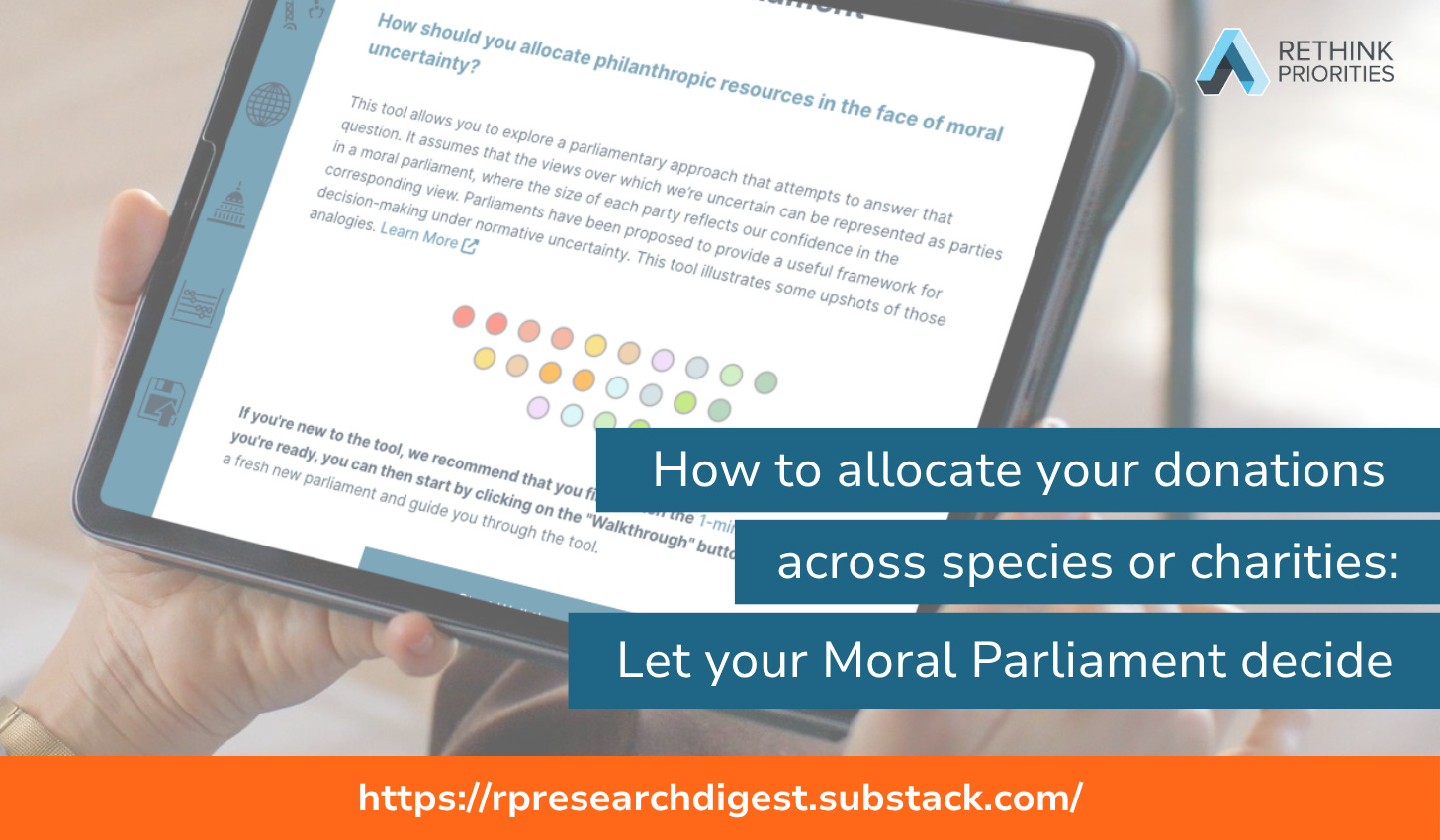 We originally developed the Moral Parliament Tool to help donors navigate uncertainty across different moral philosophies and cause areas. Now, we’re releasing new functionalities that adapt the tool to specific resource allocation problems—both the big cross-cause questions and the granular within-cause decisions that donors actually face.