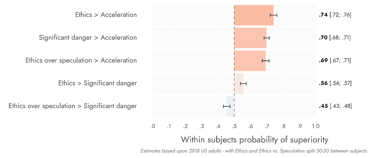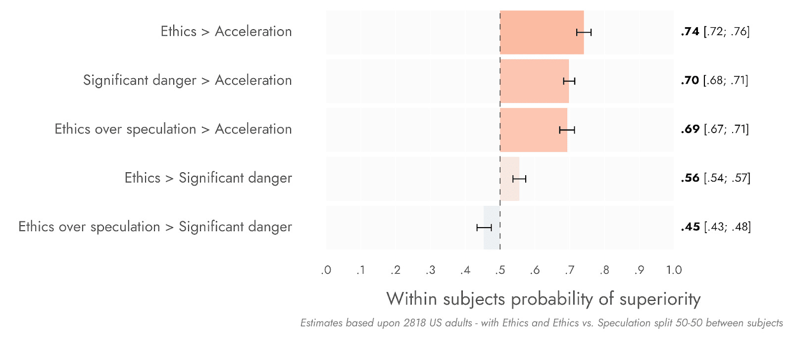 Figure 3: Within-subjects probability of superiority of agreement with selected AI-related perspectives over others